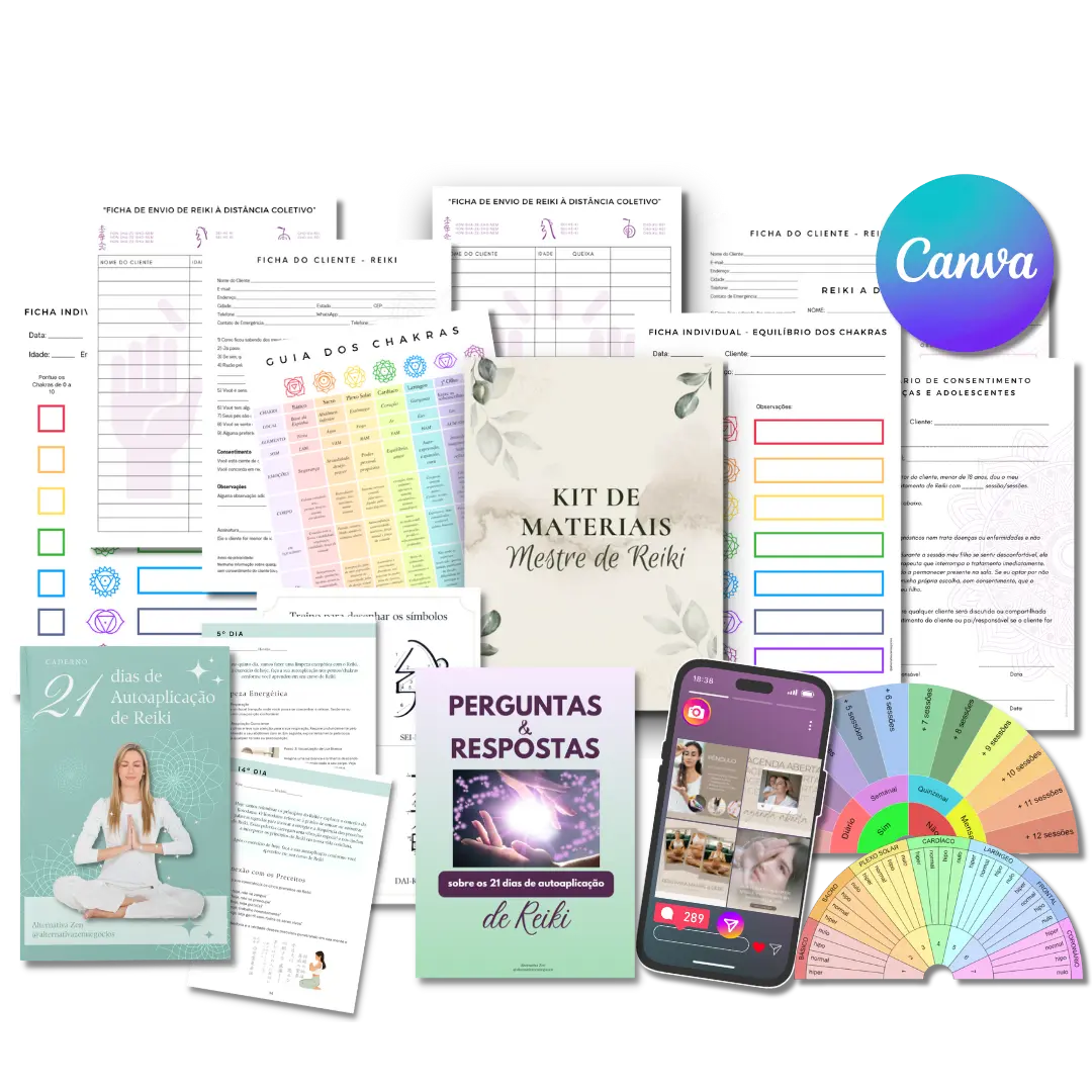 Junte-se a nós agora e experimente o poder transformador do Pacote de Materiais de Reiki Editáveis. Liberte-se da sobrecarga de trabalho e concentre-se no que você faz de melhor – COMPARTILHAR LUZ, AMOR E CURA COM O MUNDO!